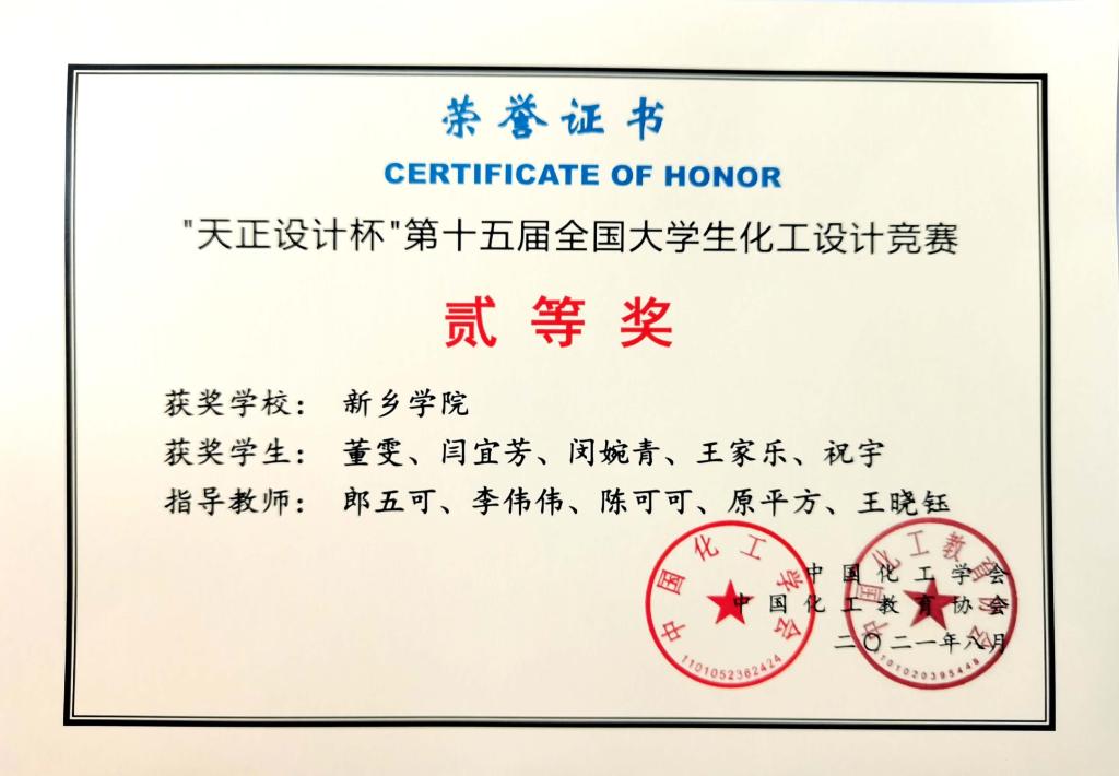 “天正设计杯”第十五届全国大学生化工设计竞赛于8月下旬落下帷幕,今年大赛共有全国401所高校的2767支队伍报名,参赛学生人数达1.4万名,规模达历史之最。我校“醇艺小组”参赛团队荣获全国二等奖。这是我校自2015年参加全国大学化工设计竞赛以来,连续7年收获全国二等奖。