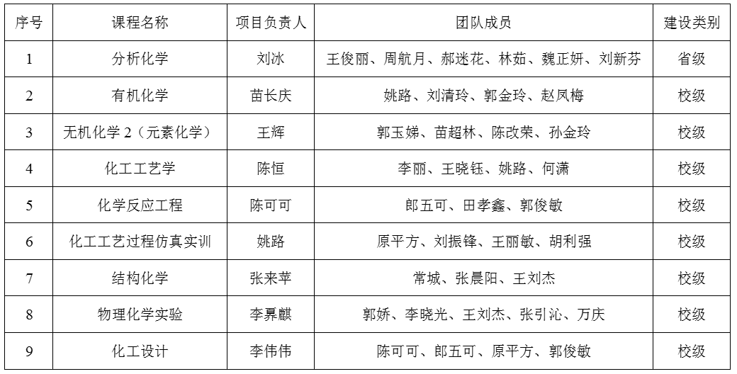 近日,河南省教育厅发布《关于公布河南省2021年本科高校课程思政项目建设名单的通知》(教高〔2021〕432号),经个人申报、学校推荐、专家评审、结果公示等环节,我院“分析化学”课程获批河南省第二批本科高校课程思政样板课程。此外有机化学、无机化学2(元素化学)、化工工艺学、化学反应工程、化工工艺过程仿真实训、结构化学、物理化学实验、化工设计8门课程被认定为校级课程思政示范课程。