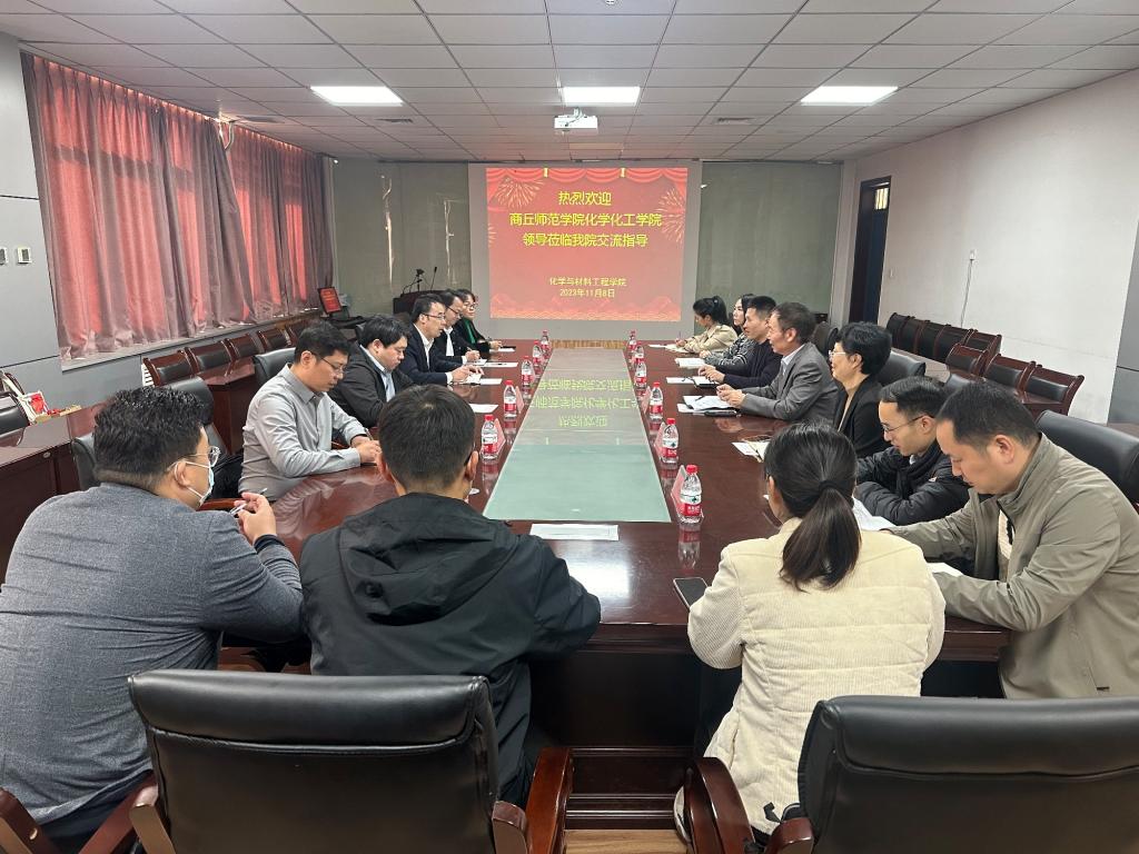 2023年11月8日下午,商丘师范学院化学化工学院院长张银堂、副院长王涛一行5人到我院交流。我院院长周建伟、书记王艳博、副院长张伟、副院长郭娇、副书记李彦霓及部分教师代表参加座谈会。
