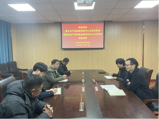 12月11日,新乡市产品质量检验检测中心主任徐军涛、国家电池产品质量监督检验中心主任李林等一行4人莅临我院交流洽谈。学院院长周建伟、副院长张伟,科研秘书谢艳新其他相关人员参加此次交流会。