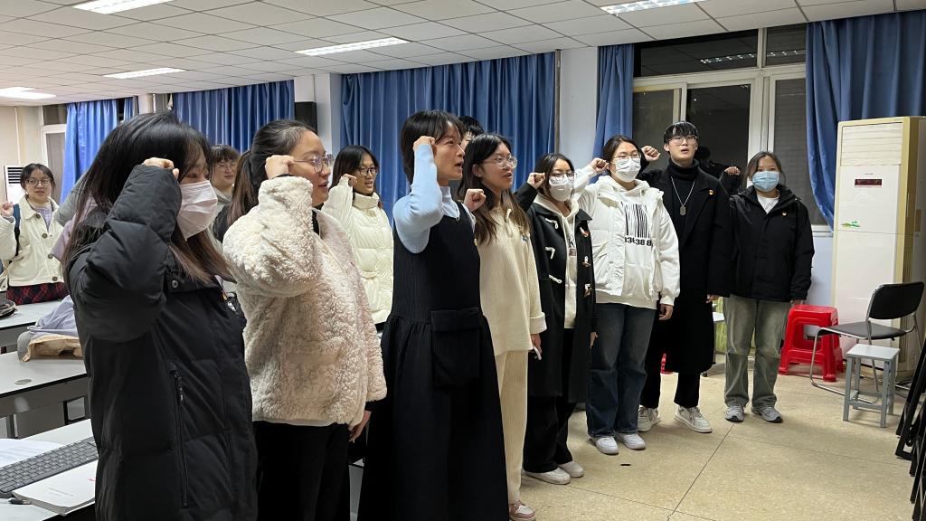 会议第二项,对预备期满的党员进行转正大会。预备党员们依次发表转正申请及思想汇报,而后,培养人及参会同志分别对他们,从品行、思想、工作、学习、生活、能力等多方面进行了评价与总结,也发表了中肯的建议和意见,表达了对预备党员的期盼,希望他们今后不忘初心跟党走,贡献微力量,传播正能量,对党忠诚,不负人民伟大建党精神。会议最后,支部书记周慧带领全体党员宣读入党誓词。党员们神情肃穆,眼神坚定,郑重地举起右拳,面对党旗庄严宣誓。