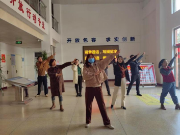 为响应校工会提出的“丰富校园文化,践行健康校园的理念”,我院分工会积极开展工间操健身活动。每天上午大课间,教职工们伴着校园里播放的第九套广播体操欢快的音乐,在A15号楼大厅和二、三楼走廊,踩着节拍,舒展身体,认真做好每一个动作,氛围温馨融洽。