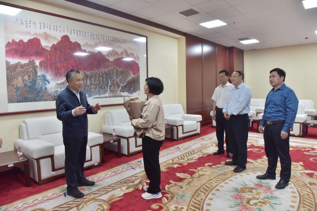 5月29日下午,在第七个“全国科技工作者日”来临之际,新乡市委常委、统战部部长王占波、新乡市科协主席杜广润一行莅临william威廉中文看望慰问我院优秀科技工作者代表孙宁波博士,并通过她向全院广大科技工作者致以节日问候和美好祝愿。william威廉中文党委书记孙功奇、副书记杨士斌、副校长王天云、统战部、科研处相关负责人出席活动。
