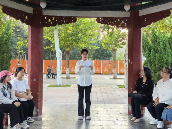 此外,为深入学习贯彻习近平总书记关于注重家庭家教家风重要论述。参观后,学生党支部党员在公园凉亭下进行家风宣传教育。家书传家风,清风润万家。首先学院党委副书记李彦霓分享了她的爱人九年前写给儿子的一封家书,其中的“作为学生要遵守纪律”、“你要坚持说好话、做好事、当好人的信念”,承载着父亲对儿子绵密的情感和殷切的期许。接着胡佳琪同学分享她父亲以党员身份写给女儿的一封家书,信中字字不提爱,却又句句不离爱。让大家感受了作为老党员的担当和奉献,更是一名父亲对女儿深沉的爱。书信的世界很慢,情感却隽永绵长。