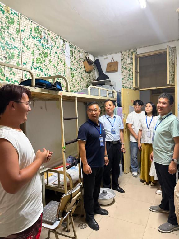 随后,院领导走访部分大二学生宿舍。检查过程中发现,宿舍整体环境良好,物品摆放整齐。院领导对同学们良好的生活习惯和积极向上的精神风貌给予充分肯定,并强调保持良好宿舍环境对学习和生活的重要性。
