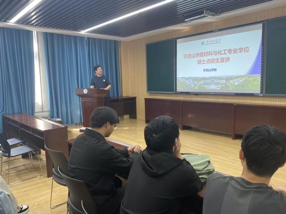 为深化考研指导工作,助力学生科学规划学业与就业路径,9月25日下午,平顶山学院化学与环境工程学院党委书记曹萍一行4人来我院开展硕士研究生招生宣讲和交流。此次活动吸引了众多即将报考研究生的22级学生及对考研充满兴趣的学子积极参与,学院党委副书记李彦霓、副院长郭娇、教学秘书杜全周出席会议。