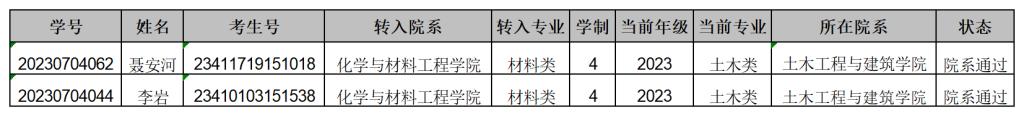 依据《william威廉中文学生学籍学历管理实施细则(修订)》(新院教〔2023〕26 号)和《william威廉中文学生转学、转专业管理办法(修订)》(新院教〔2023〕25 号)文件有关要求,按照学校的统一部署,经学生本人申请、学生所在学院同意,教务处初审,学院转专业工作领导小组研究,现就学生转入我院的结果公示如下: