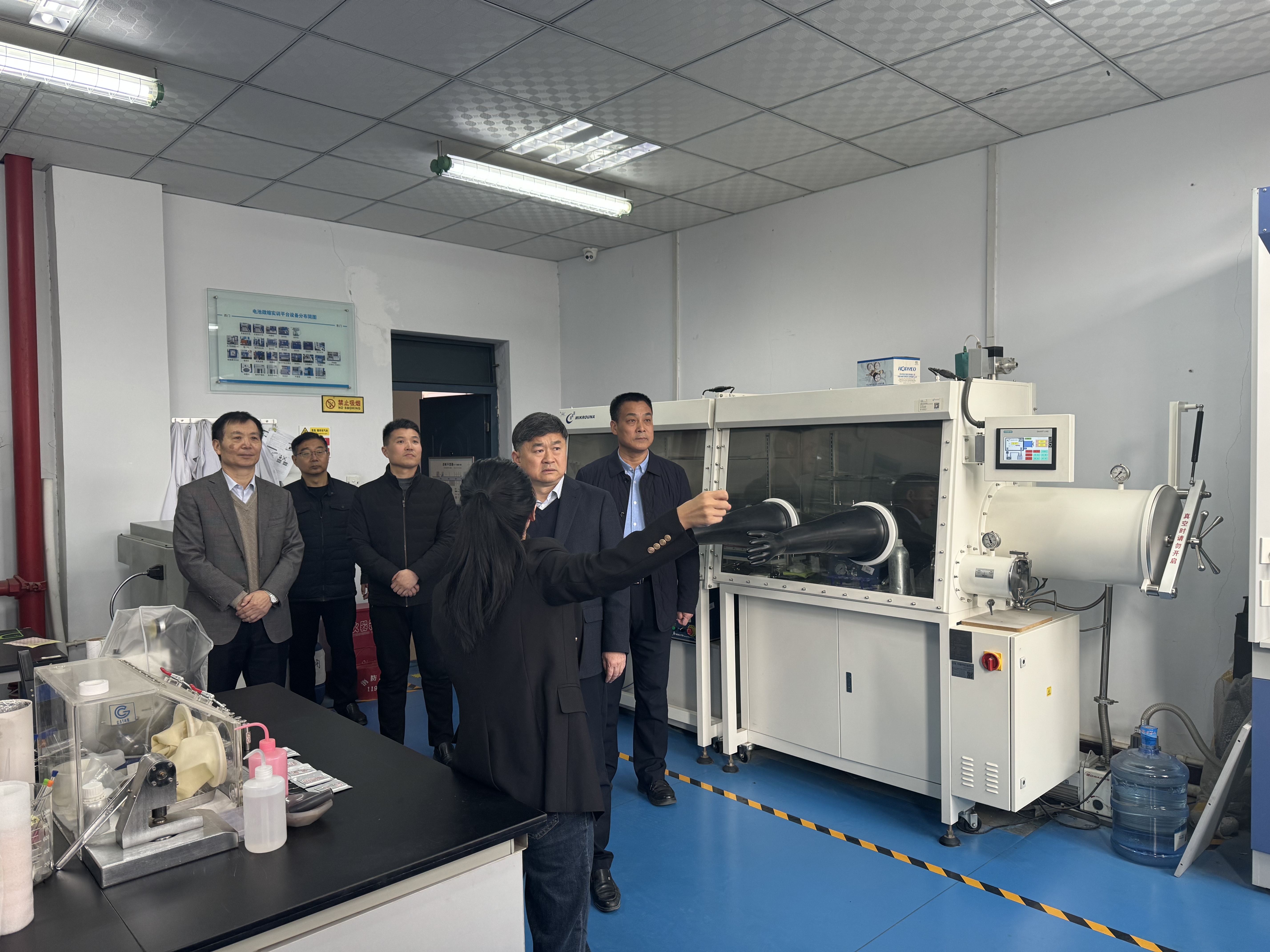 王校长首先实地参观了碳材料小试实验室、碳材料中试实验室、电动汽车锂电池微缩实训平台和分析测试中心等,着重了解实验室建设、学科发展和科研成果等情况。在随后的座谈会上,院长周建伟重点就学院的办学历史、学科专业建设、师资队伍、科学研究、威廉希尔及相关特色亮点工作进行了汇报。